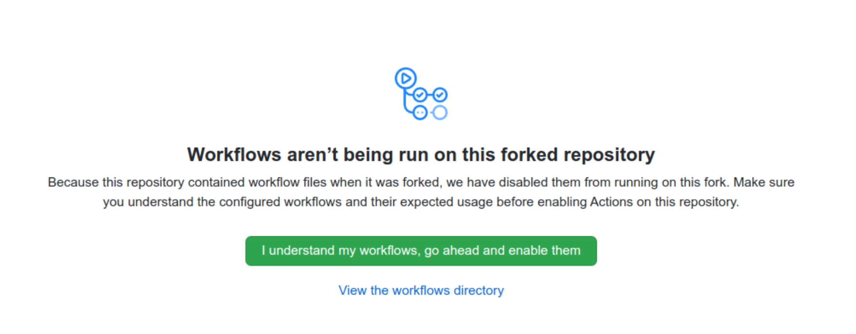 git pushOnce you have pushed a commit, go to the Actions tab of your GitHub repository and you should see the following: