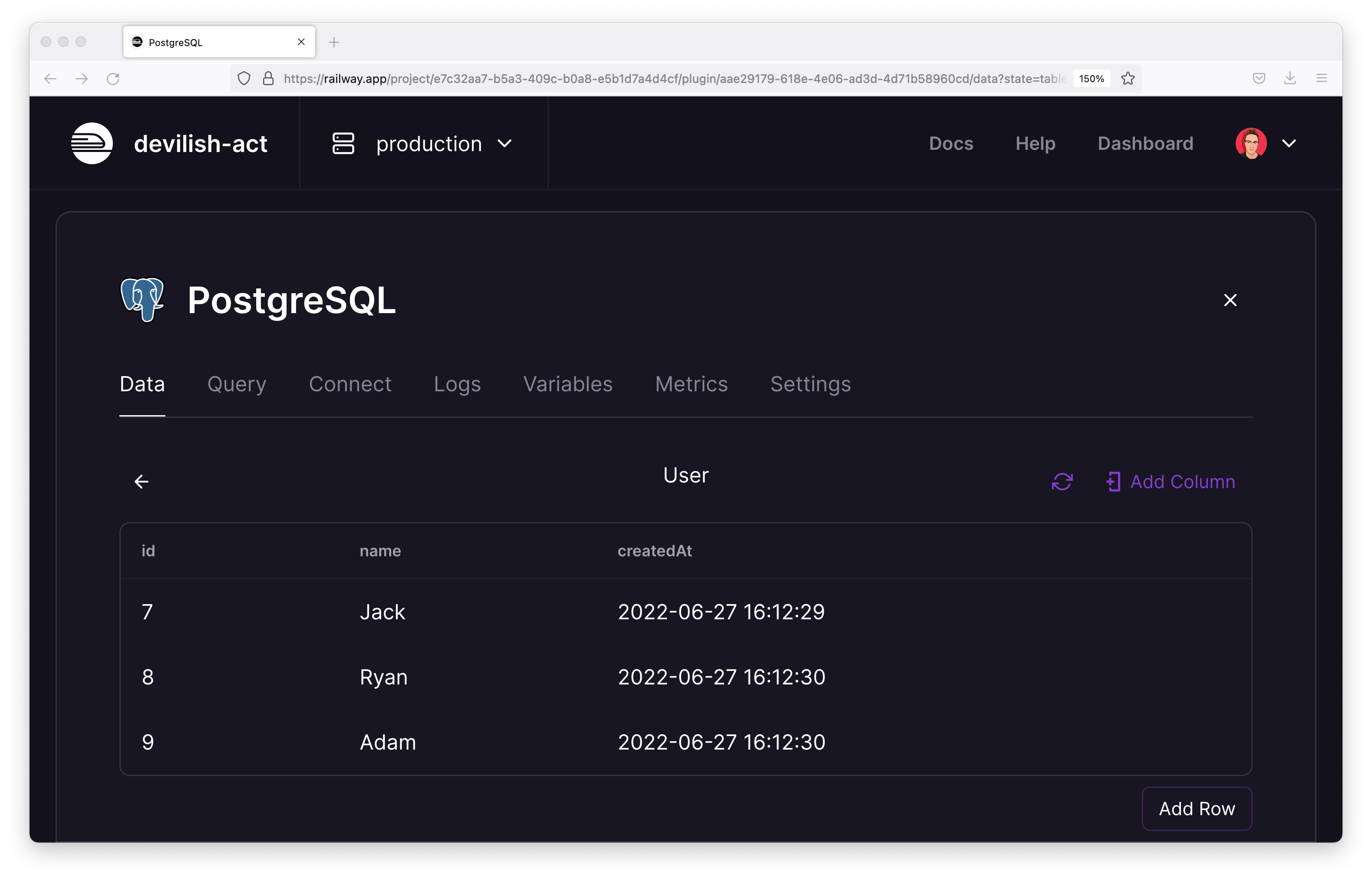 npx prisma db seedAfter running the script, if you head back to the Railway UI and into the Data tab, you should be able to navigate through the newly added data.