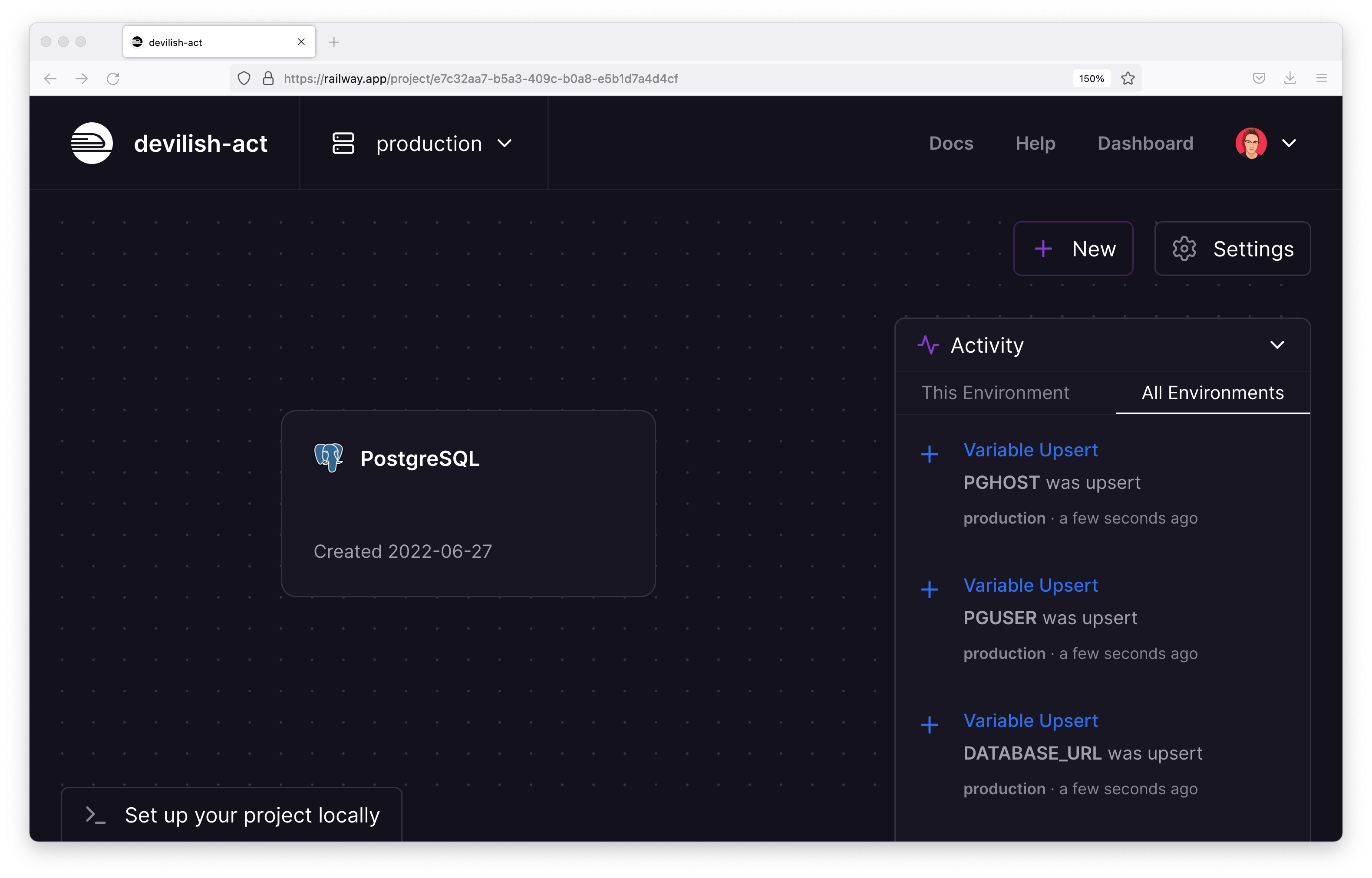 - Spun up a PostgreSQL database using Railway