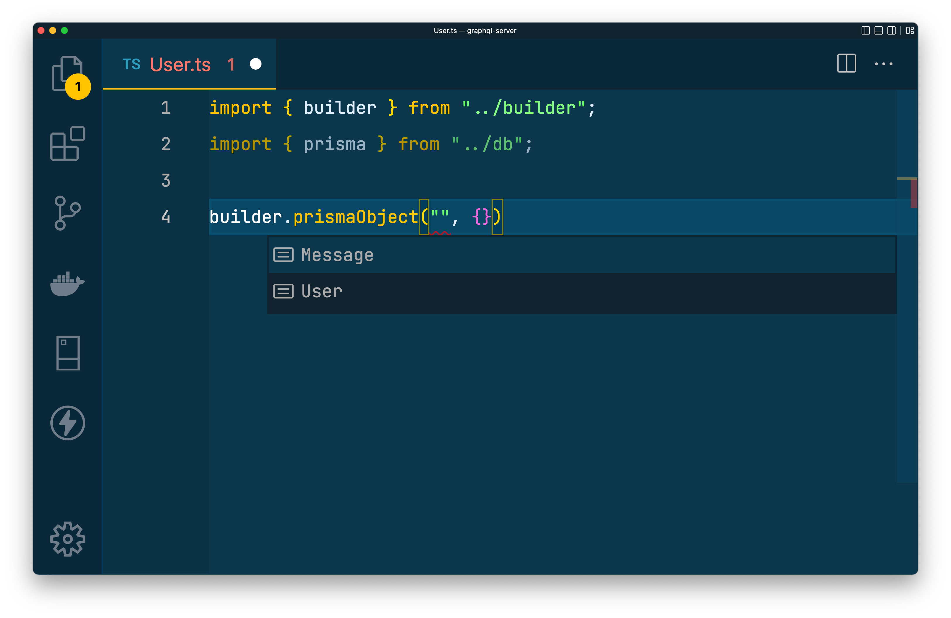 touch builder.tsFor now, import the default export from the @pothos/core package and export an instance of it named builder: