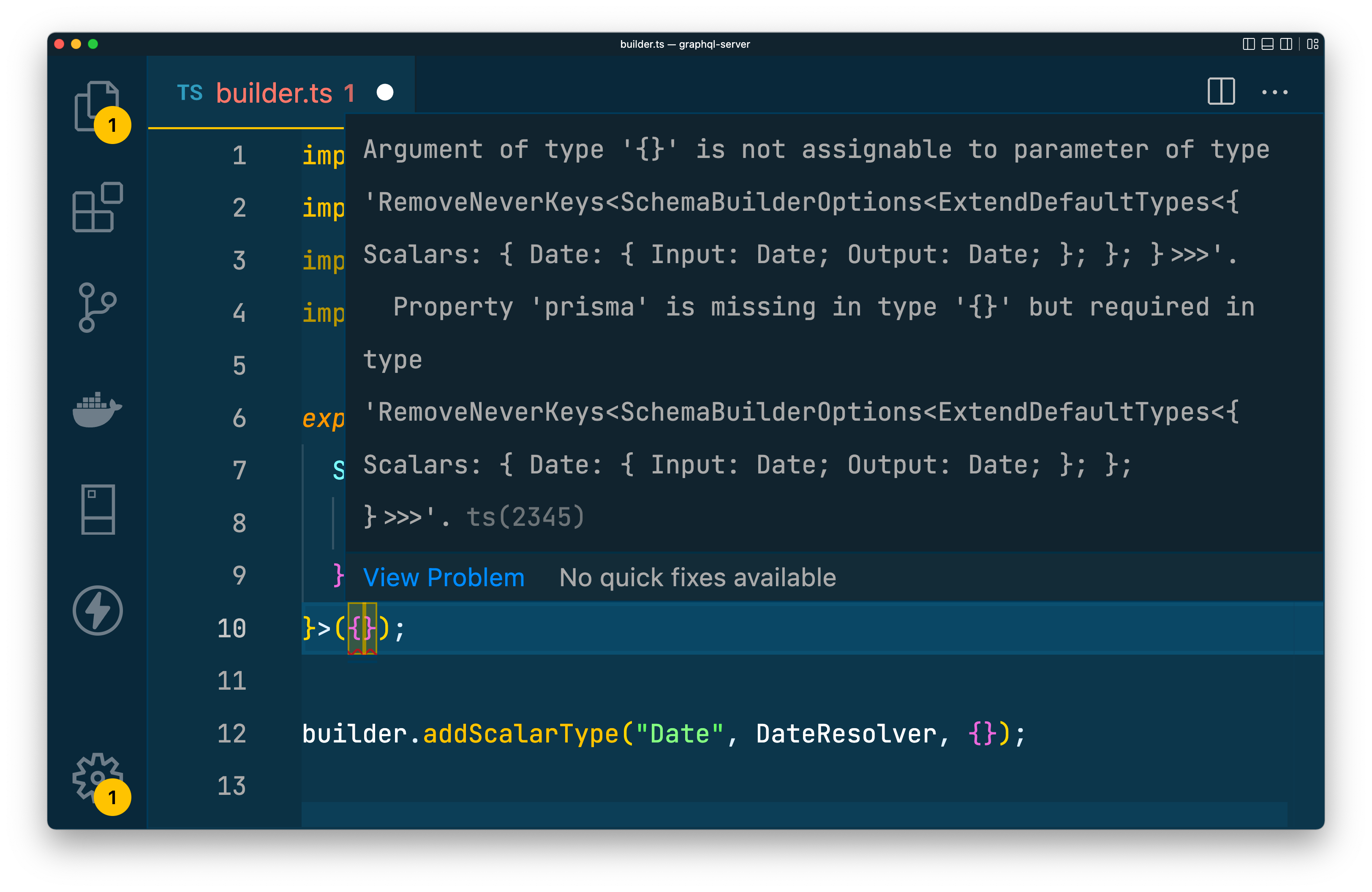 builder.addScalarType("Date", DateResolver, {});Here's what changed in the snippet above. You: