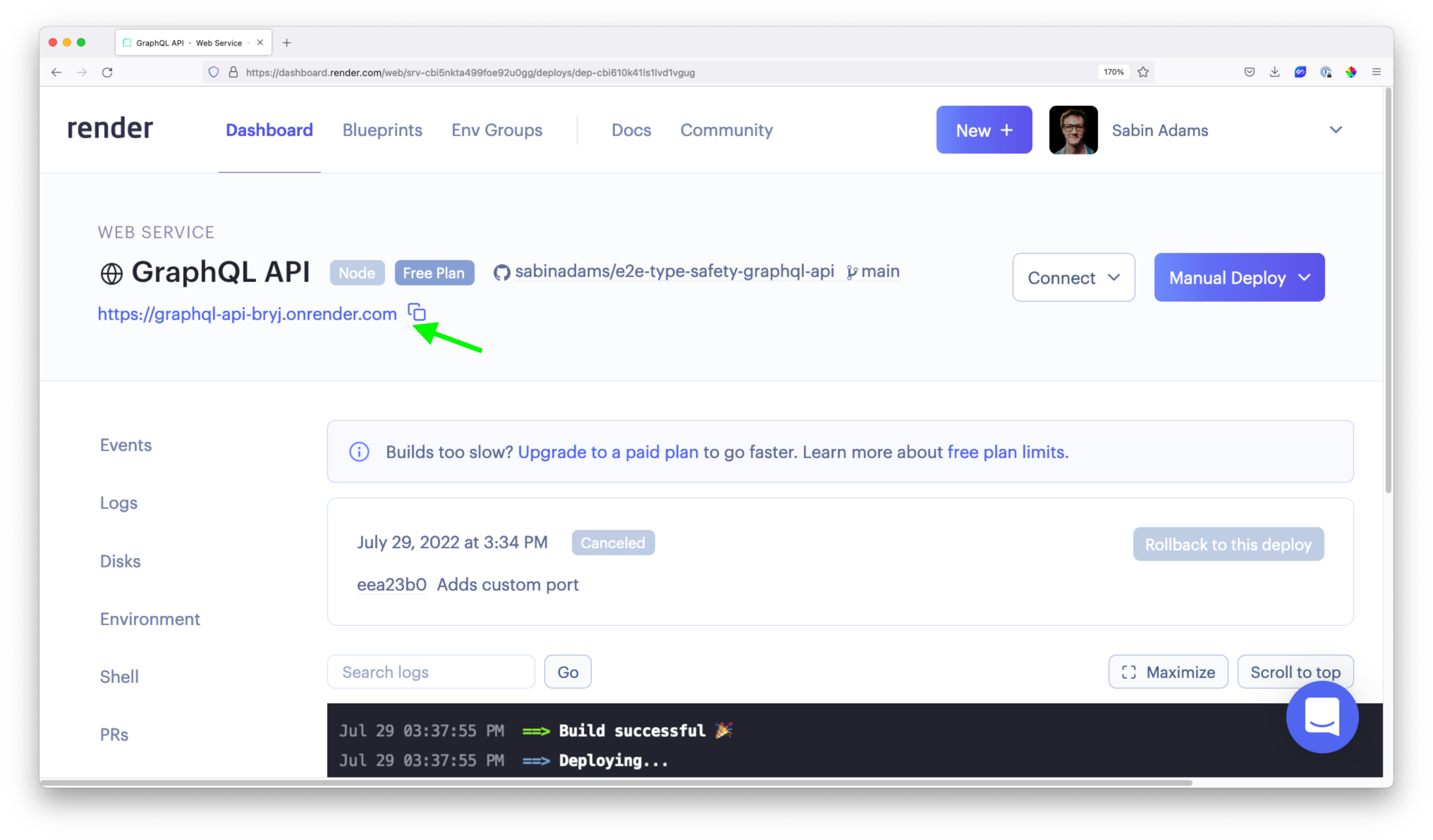 This will trigger the deployment process! Once that finishes deploying, you will be able to access the URL Render provides to see your GraphQL API.