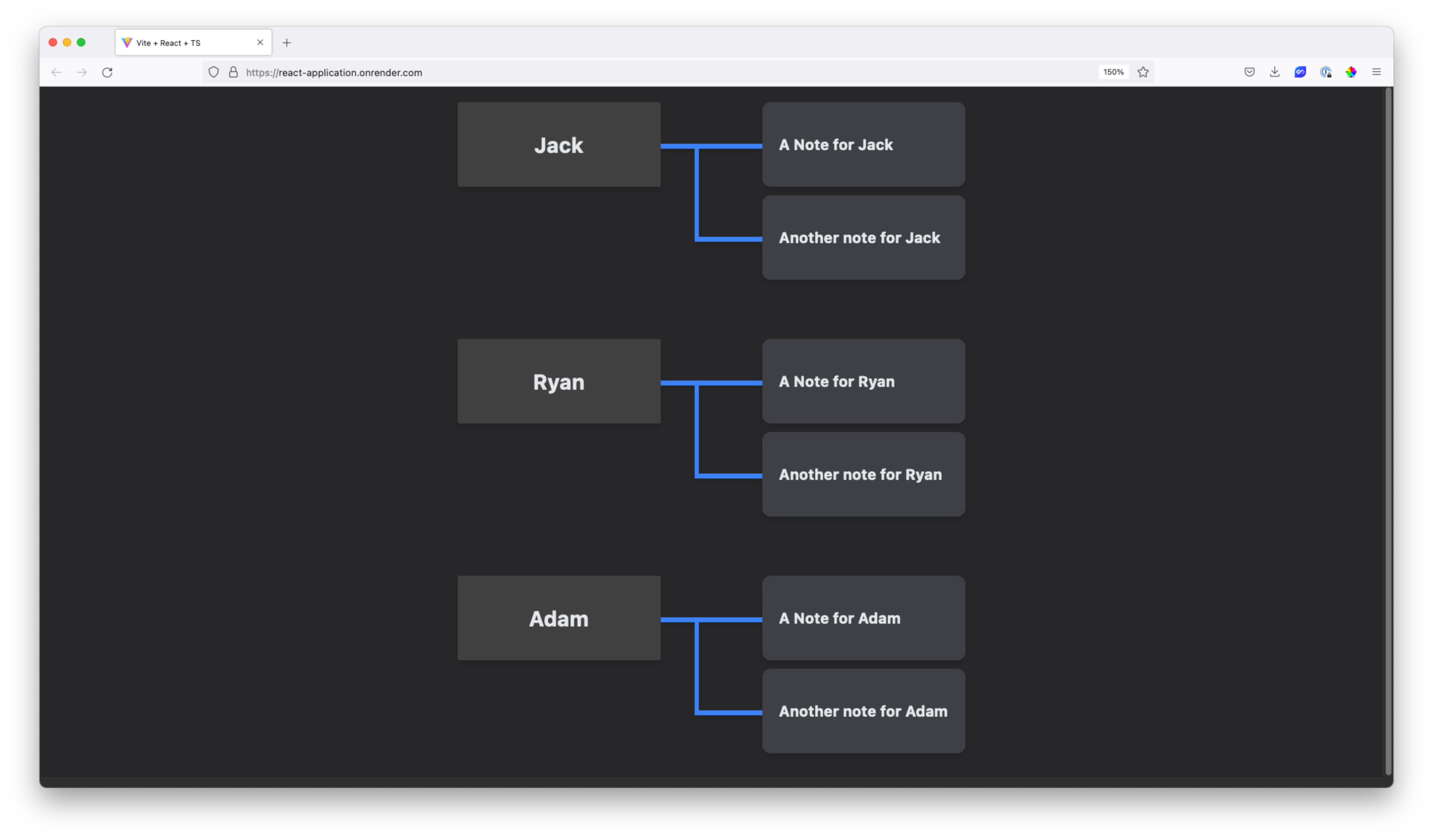 export default AppNotice your API request results are properly typed based off of the types within the API itself! If both your API and Client are running, head over to the browser. You should now see all of your data!