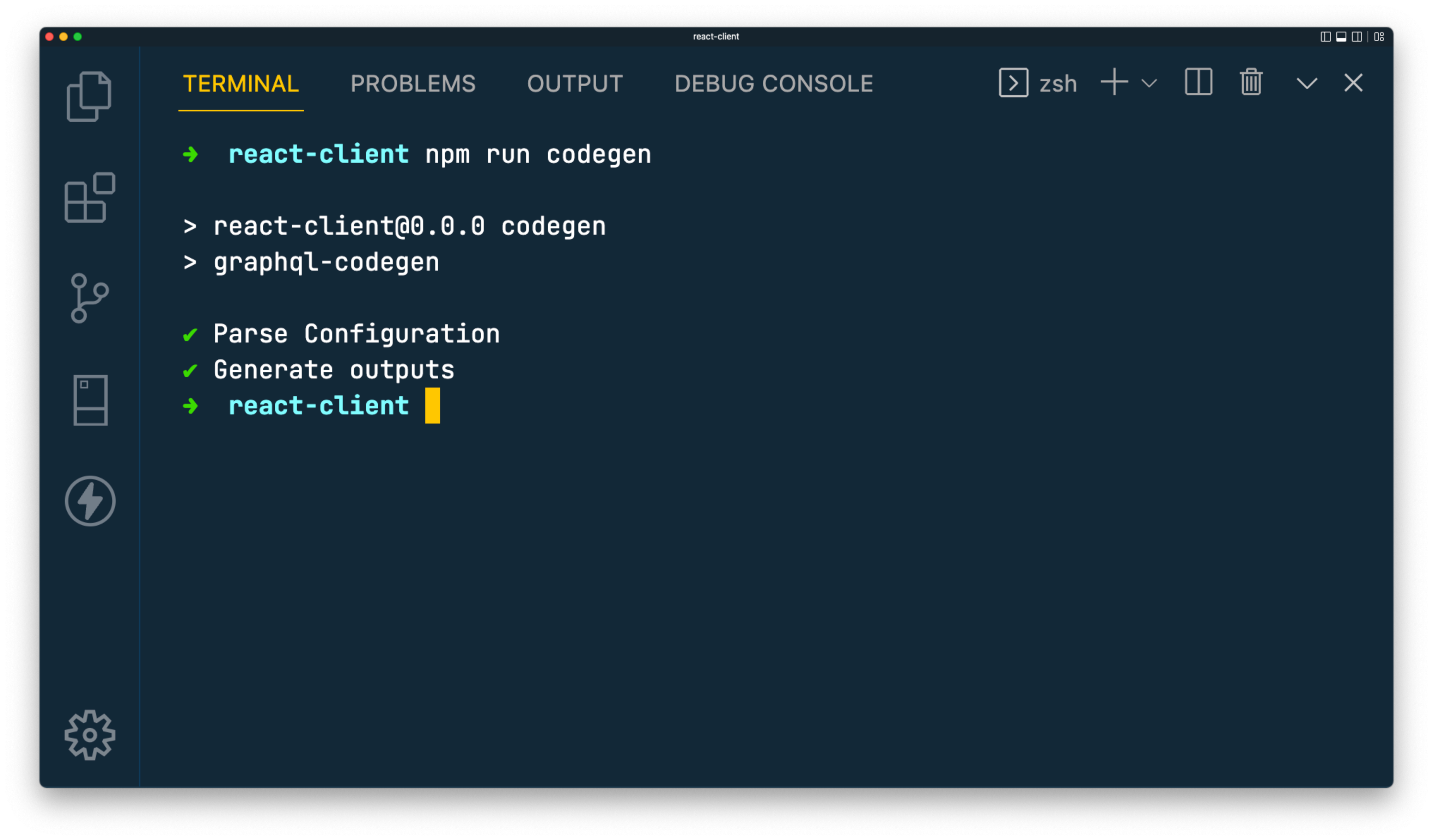 cd react-clientYou will need a few different packages to set up GraphQL Codegen. Run the following to install the packages needed: