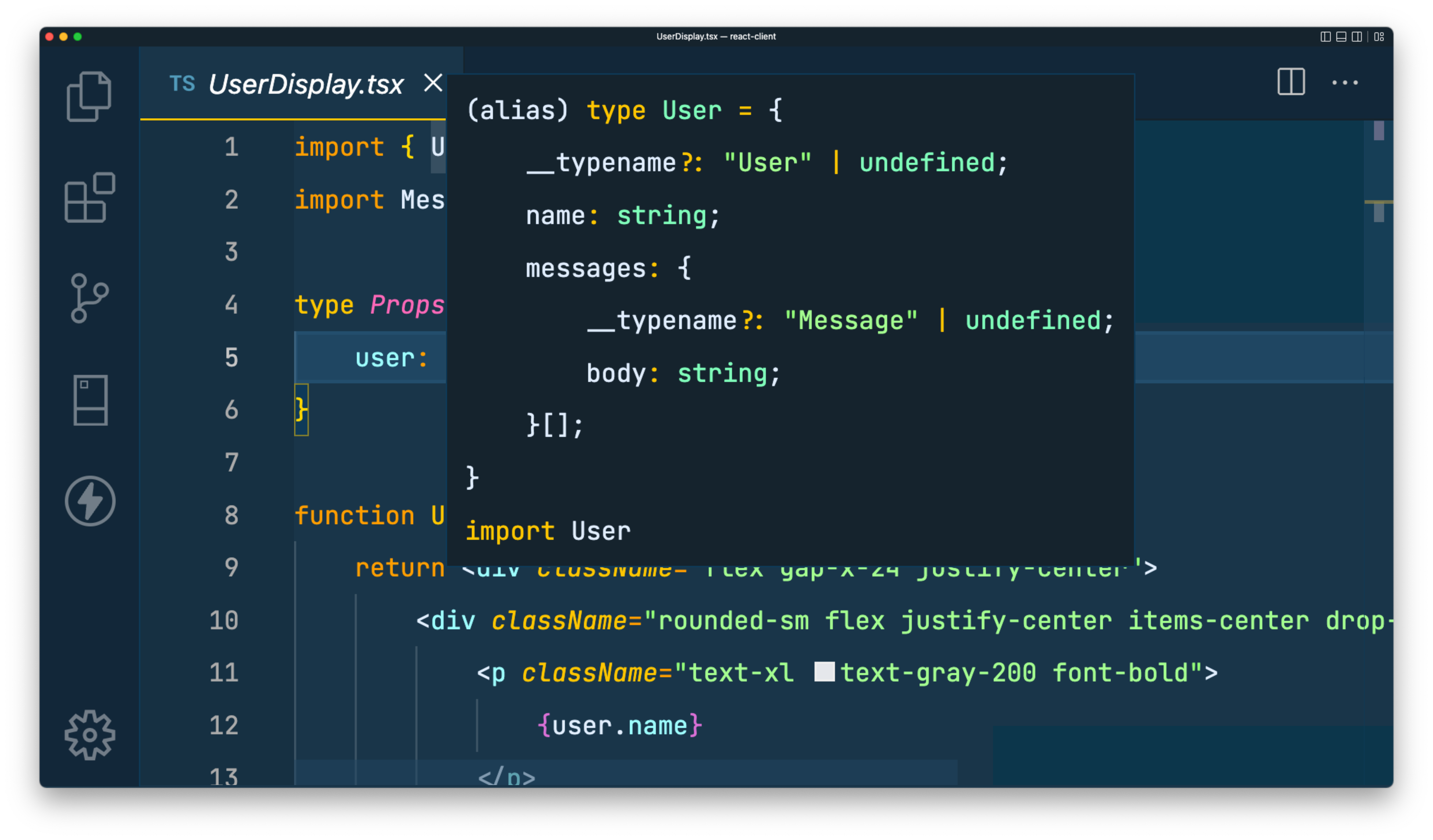 GraphQL Codegen will generate TypeScript types and query helpers in your React project based off of your GraphQL schema and the queries you write in your frontend application.