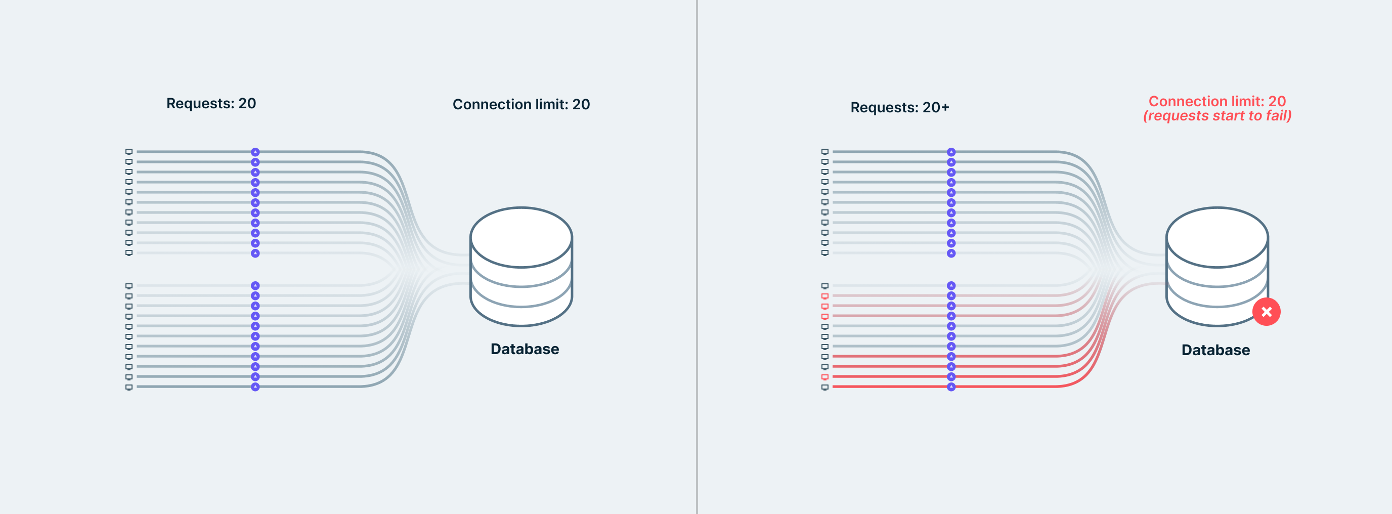 When there's a traffic spike, each serverless function will spawn a new database connection.
