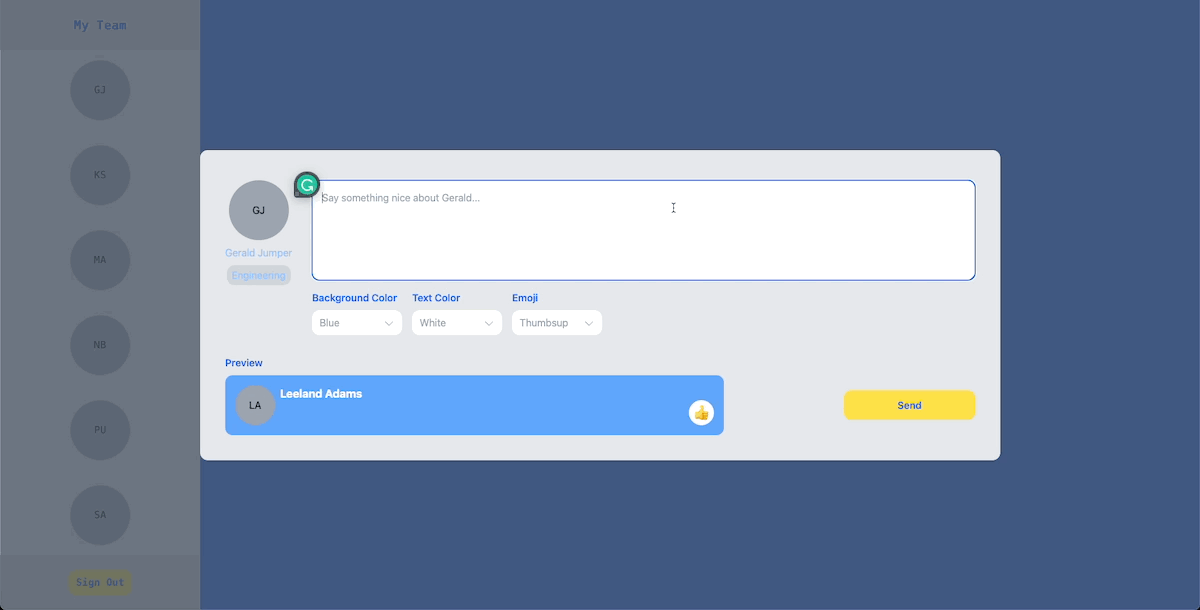 The last thing your feed needs is a way to display the most recently sent kudos. This component will display a UserCircle component for the three most recent recipients of kudos.