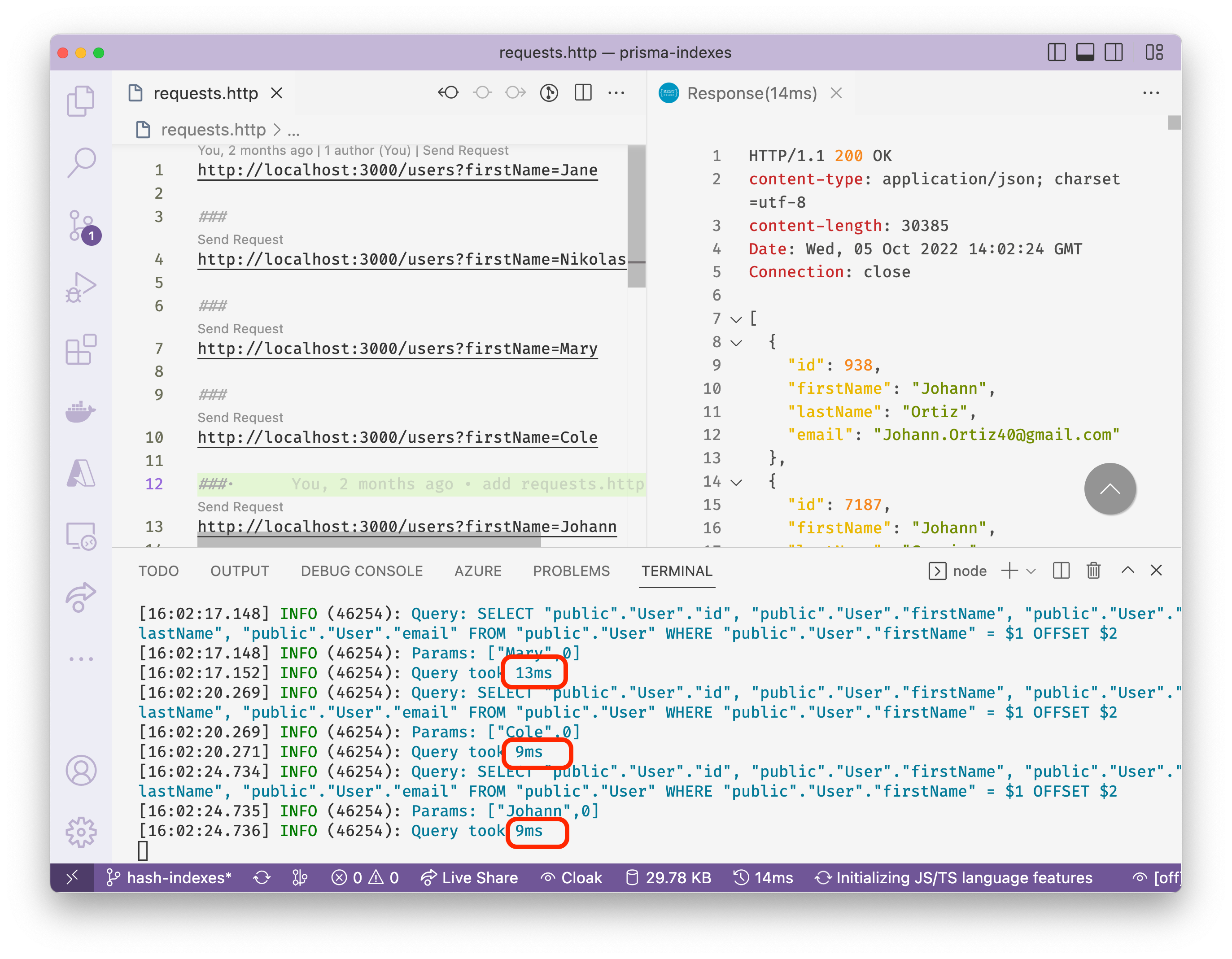npx prisma migrate dev --name add-firstName-indexNext, navigate to the requests.http file again and resend the requests to the /users route.