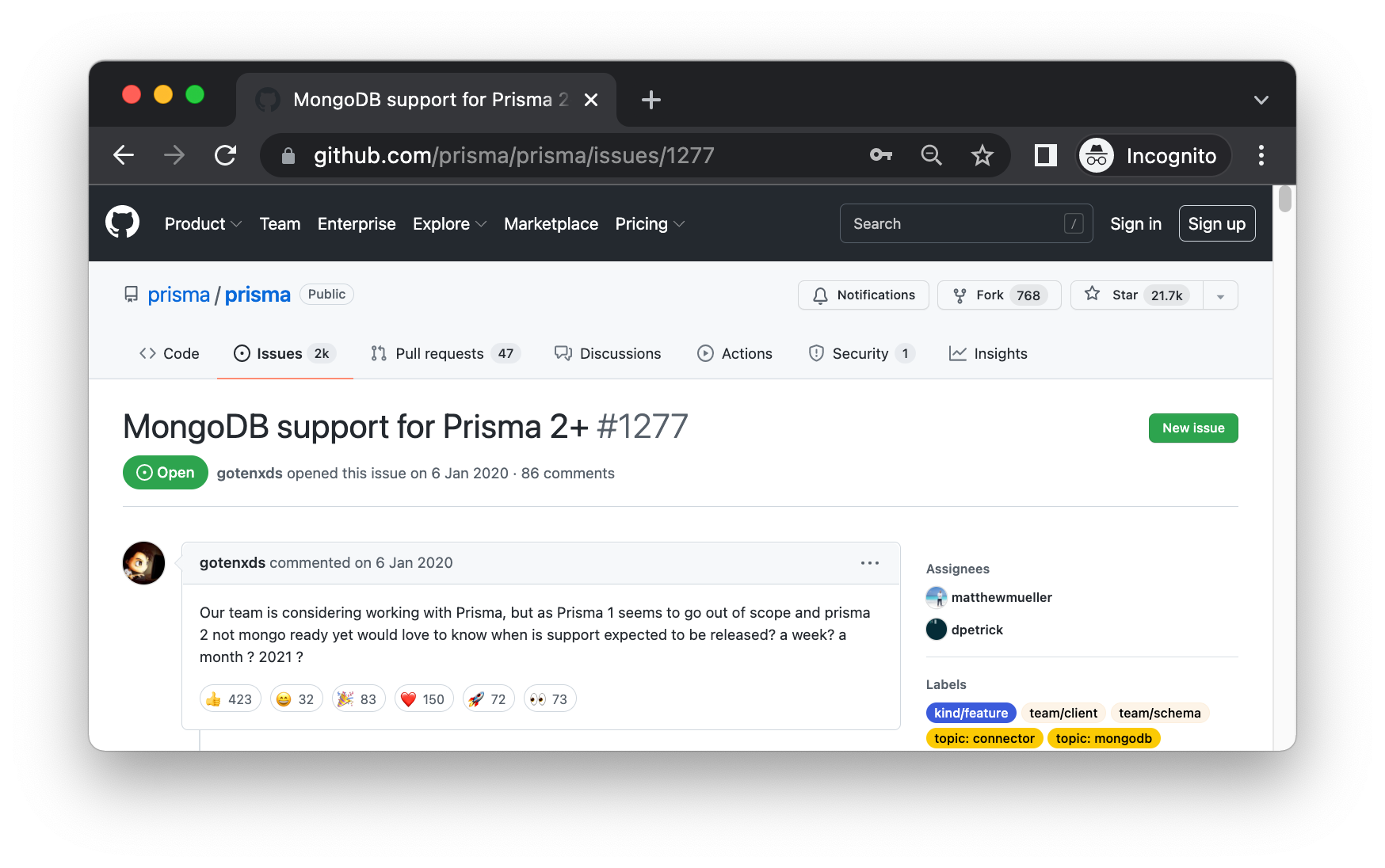 Support for MongoDB has been one of the most requested features since the initial release of the Prisma ORM. Using both technologies together makes developers more productive and allows them to ship more ambitious software faster.