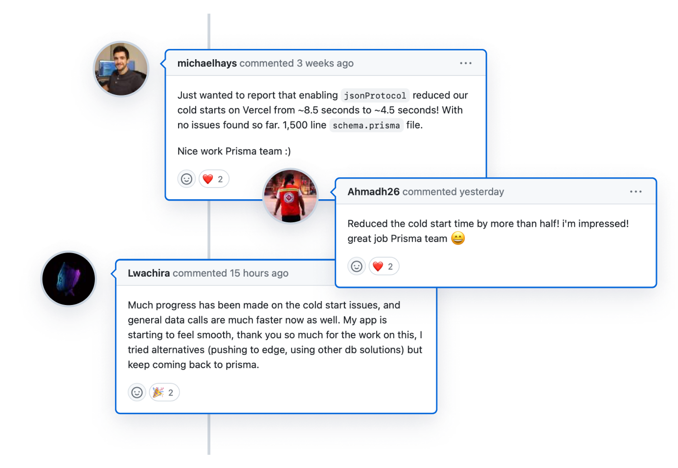 This goal to make the Prisma experience on serverless as smooth as we can is a very ambitious one. While we have a fantastic team dedicated to improving the startup performance of serverless functions using Prisma Client, we also realize we have a massive community of developers eager to contribute where they can to this initiative.