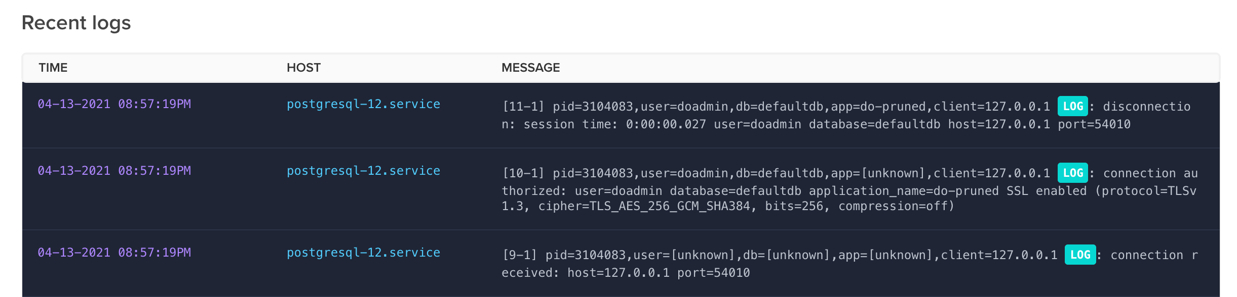 Each cloud provider also has a different way to access the database logs. Most make the logs easily accessible from the deployment management page.