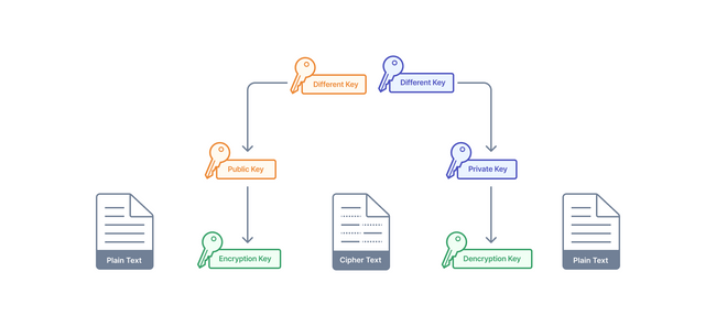 - Asymmetric Encryption - A method also known as public key cryptography that creates two different keys, a private key and a public key that are not identical. The public key can be shared with anyone, and the private key only with authorized people. The public key can be used to encrypt data that can only be decrypted by the private key.