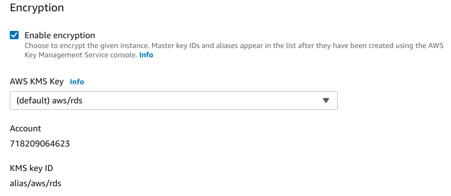 Again, you can leave the default AWS KMS Key selected for this encryption unless you have special requirements.