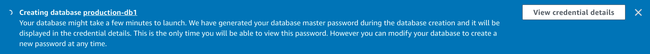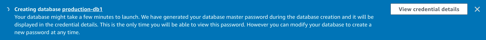 If you configured AWS to auto generate a password, you will see a notice like this at the top of the screen: